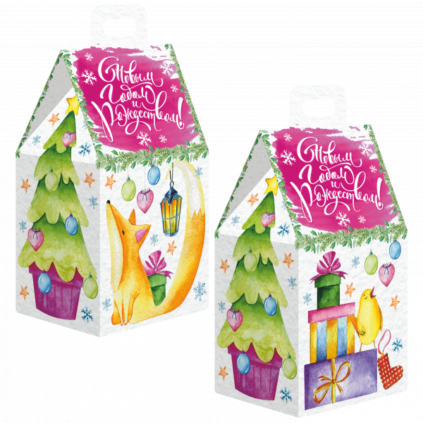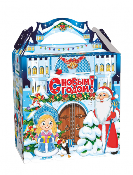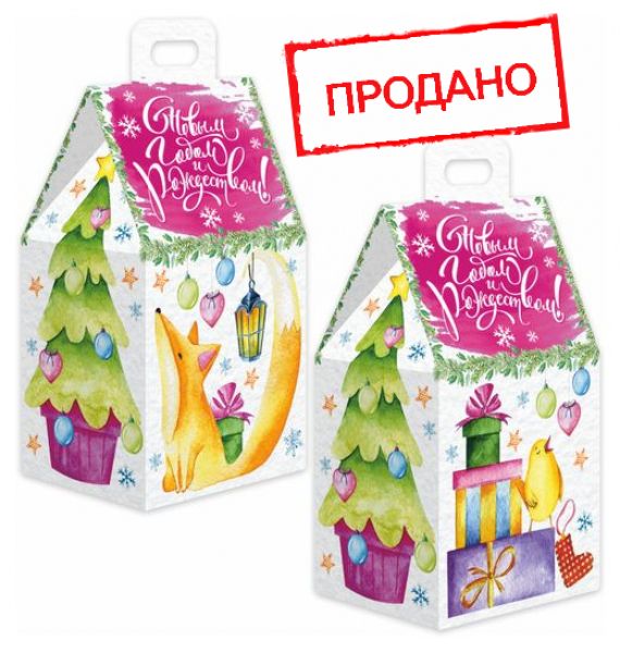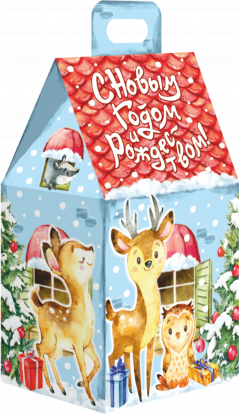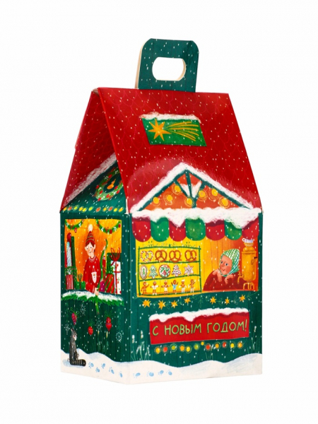 Картонная упаковка"Домик со снеговиком 1000г (остаток 80 шт)"
