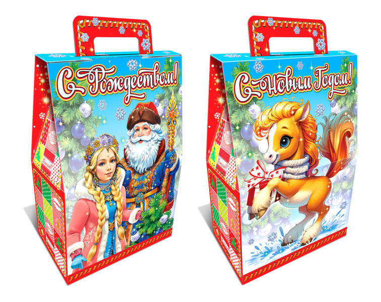 Картонная упаковка"Сумочка "Елка-пати" 700 грамм (остаток 30 шт)"